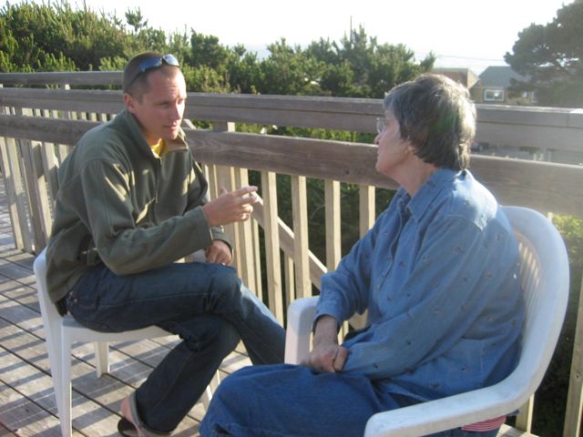 - The family reunion went really well. The 24 (or so) of us fit nicely into a spacious home overlooking the Pacific in Lincoln City. The days and nights were windy and a bit chilly but generally beautiful. My grandma (photo above) and I spent a couple of hours charting out the family tree. Apparently I have German, French, Swedish and English ancestry from this side of the family. Also, a number of the men on this side were bakers… something I may need to look into.